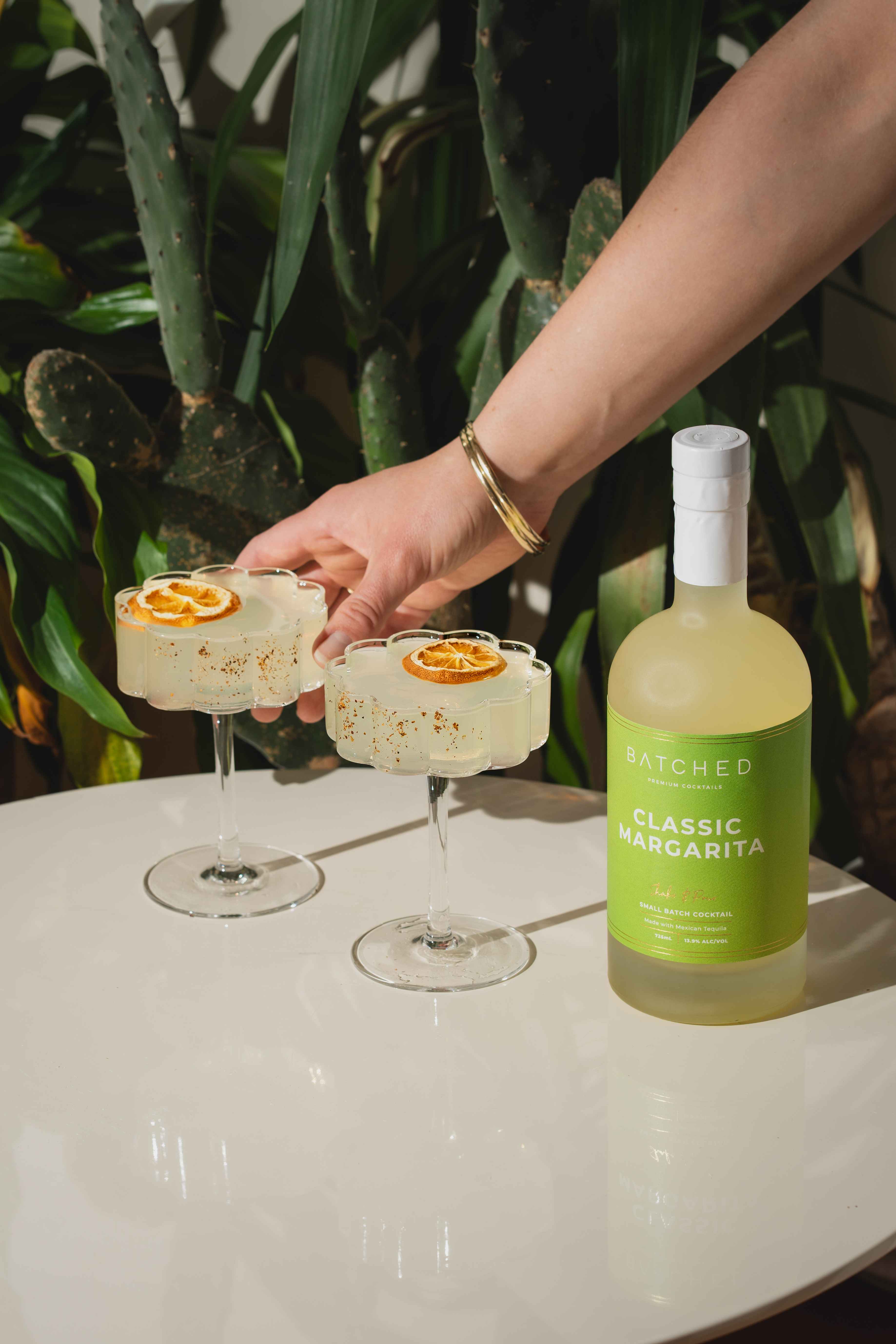 The perfect gift, enjoy our delicious BATCHED Classic Margarita in our exclusive BATCHED wave coupe glasses. This gift bundle includes 1 x BATCHED Classic Margarita 725mL bottle and 1 x BATCHED 2 Wave Glass Gift Pack.